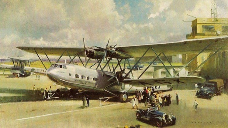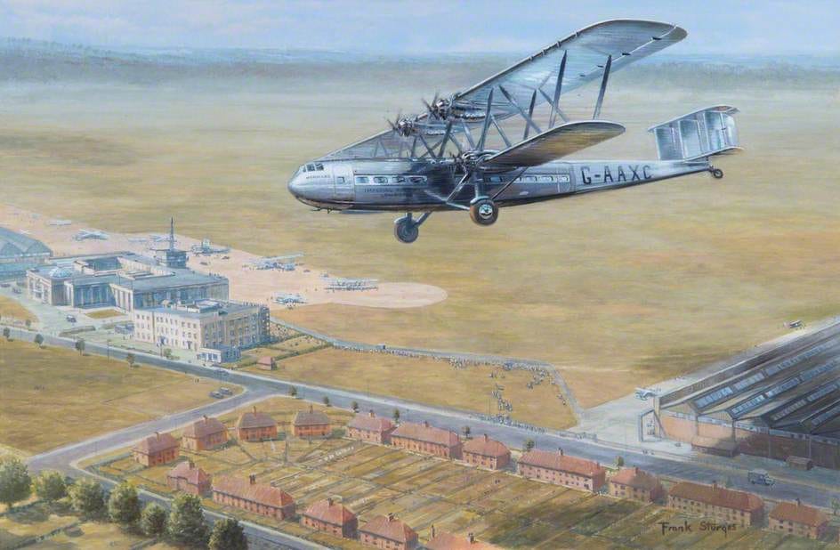 In the 1920s airports were grass fields, navigation was pretty basic, and Hadley Page developed a 42 seat passenger plane. The Handley Page HP 42 made is inaugural flight in 1930.