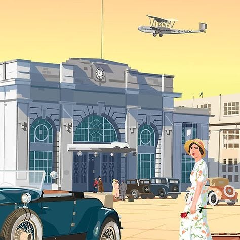 I nodded off watching an old documentary on historic aircraft. I woke up to a most interesting bit on London, England’s Croydon Airport (the predecessor to Heathrow). This fascinating biplane — a huge machine, with a long fuselage — was taking off.