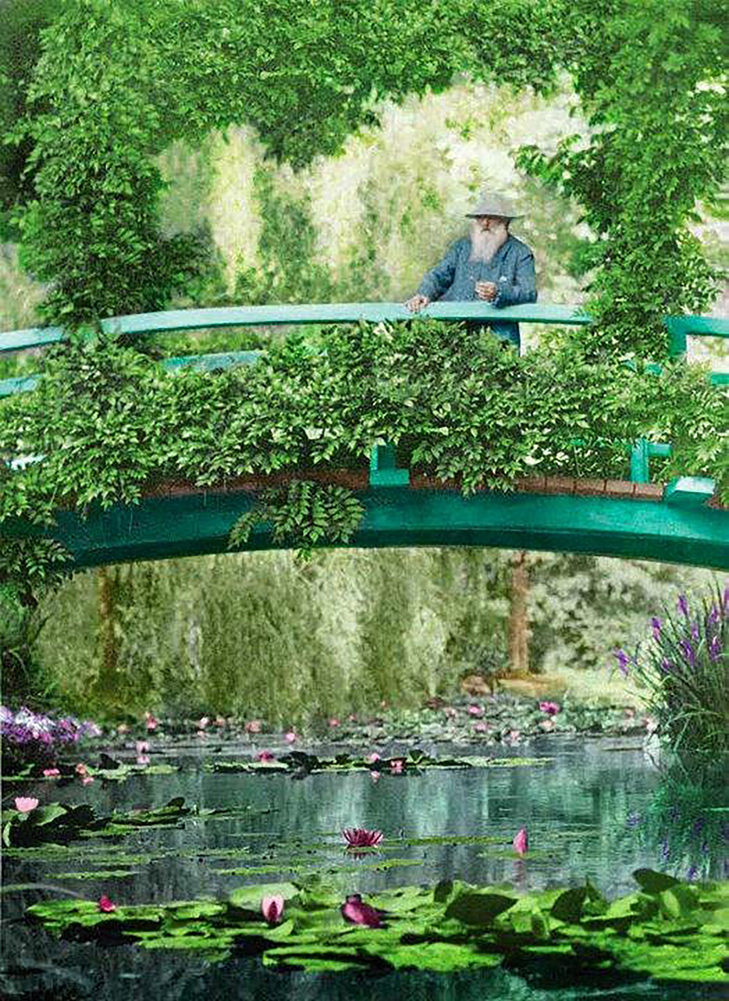 Claude Monet on his Japanese Footbridge. — Photo by Étienne Clémentel