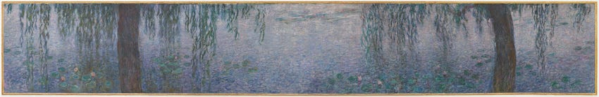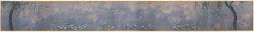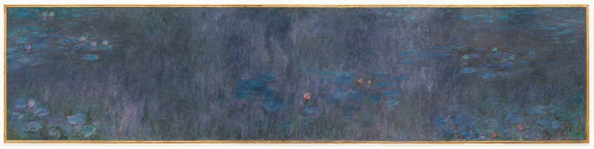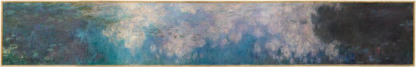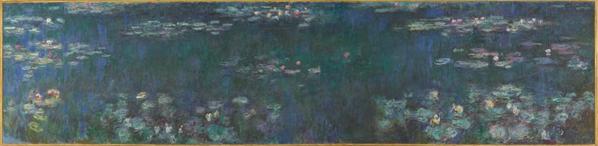 For the last thirty years of his life, Claude Monet cultivated and painted his gardens at Giverny. The Musée de l'Orangerie [click to visit] contains his famous water lily paintings; “Offered to the French State by the painter Claude Monet on the day that followed the Armistice of November 11, 1918 as a symbol for peace, the Water Lilies are installed according to plan at the Orangerie Museum in 1927, a few months after his death. This unique set, a true « Sistine Chapel of Impressionism » in the words of André Masson in 1952, testifies to Monet’s later work. It was designed as a real environment and crowns the Water Lilies cycle begun nearly thirty years before. The set is one of the largest monumental achievements of early twentieth-century painting.” — Musée de l'Orangerie (read more)