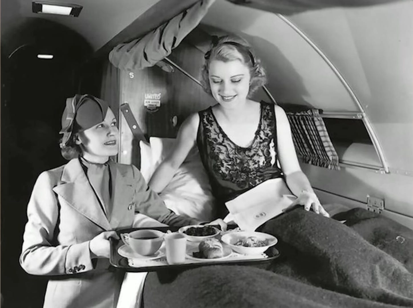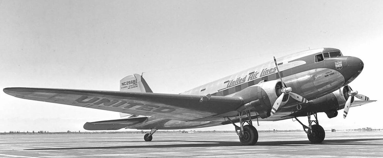 A United Airlines Douglas Sleeper Transport. Notice the eyebrow windows providing light to the upper berths.