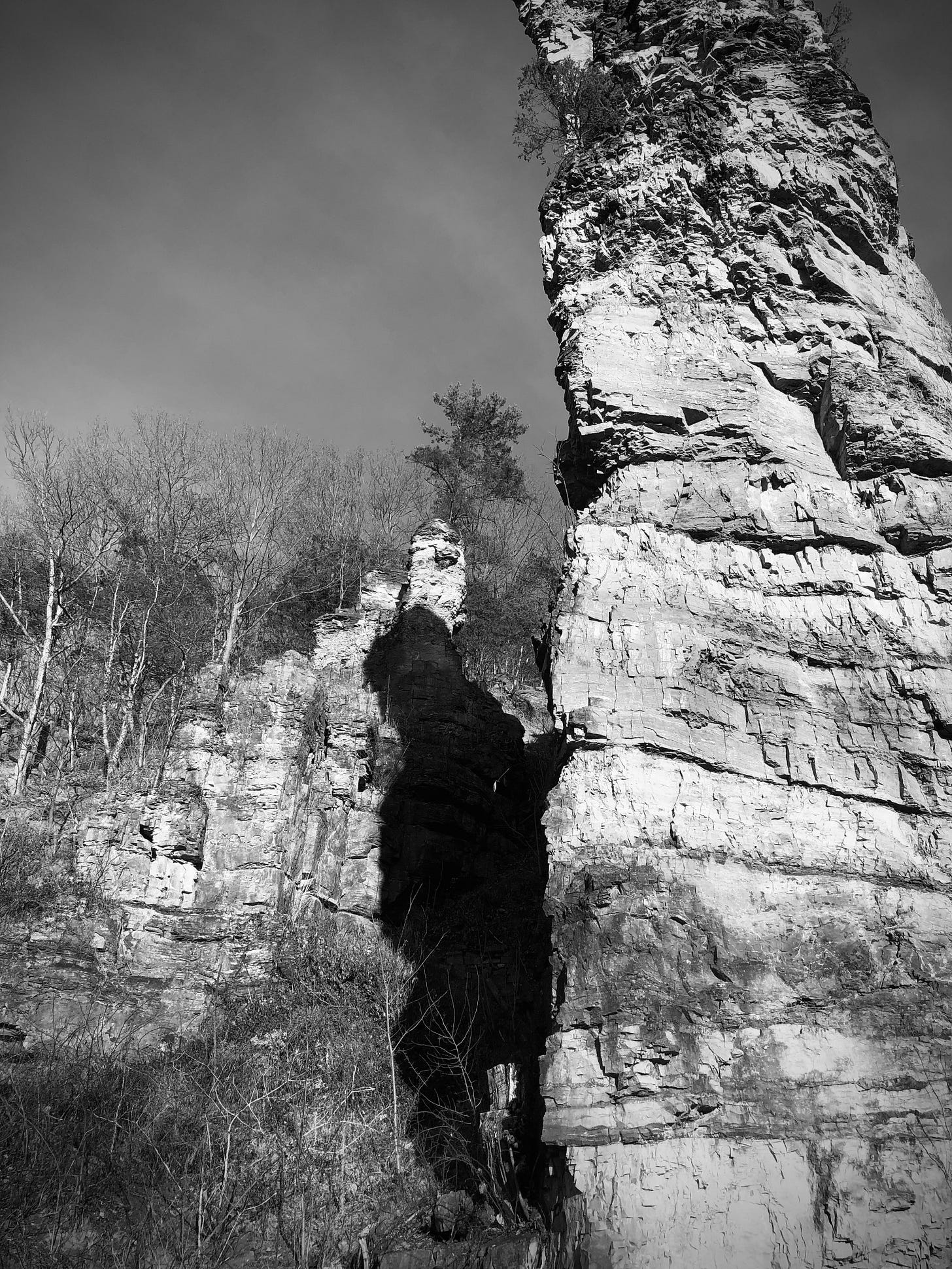 We’re pretty sure Polyphemus had a shadow yesterday, and felt the sun on his back. After his encounter with Odysseus, however, he certainly didn’t see his shadow. But we don’t know if cyclopes have anything to do with the weather anyway. Fun ramble at the Natural Chimneys after site visit on the North River. — Photo by Bob Kirchman