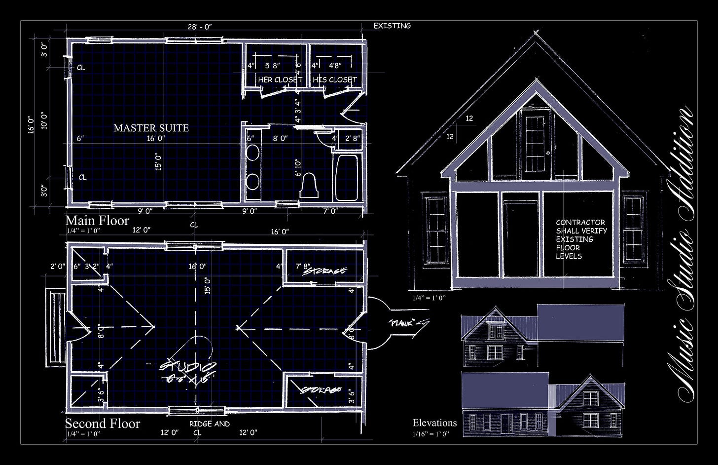 A master suite and a music studio, added to a small symmetrical house. — Photos by Bob Kirchman