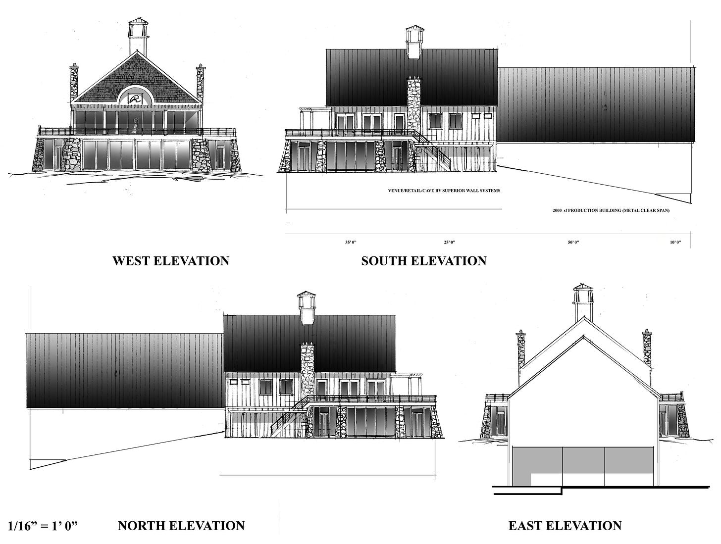 The elevation is designed to blend with the existing agricultural buildings and residence. — Drawing by Bob Kirchman