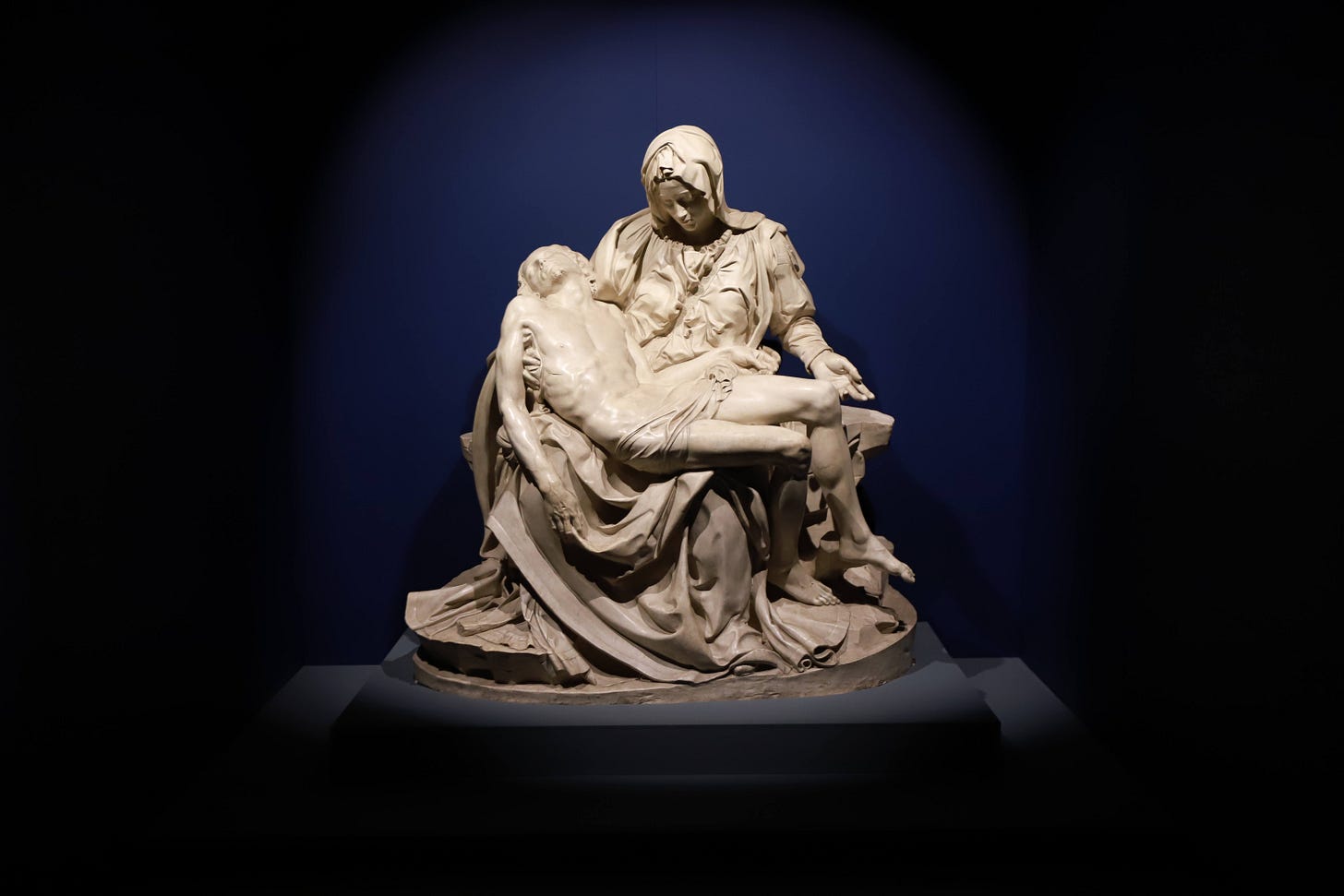 In 1499 the young artist carved it from a single block of cararra marble. Five centuries later, it captured the imagination of visitors to the Vatican Pavilion at the fair.