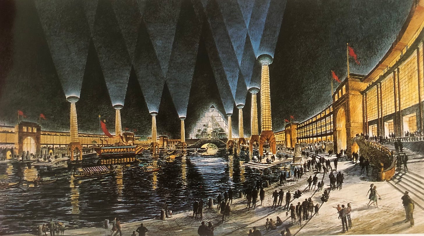 Perspective of the Court of Honor, 1992 Chicago World’s Fair (unbuilt) — Skidmore, Owings, and Merrill, Chicago/William E. Brazenly & Associates, with Thomas Beeby, Charles More, Jacquelin Robertson, Robert A. M. Stern, Stanley Tigerman, 1984-5.