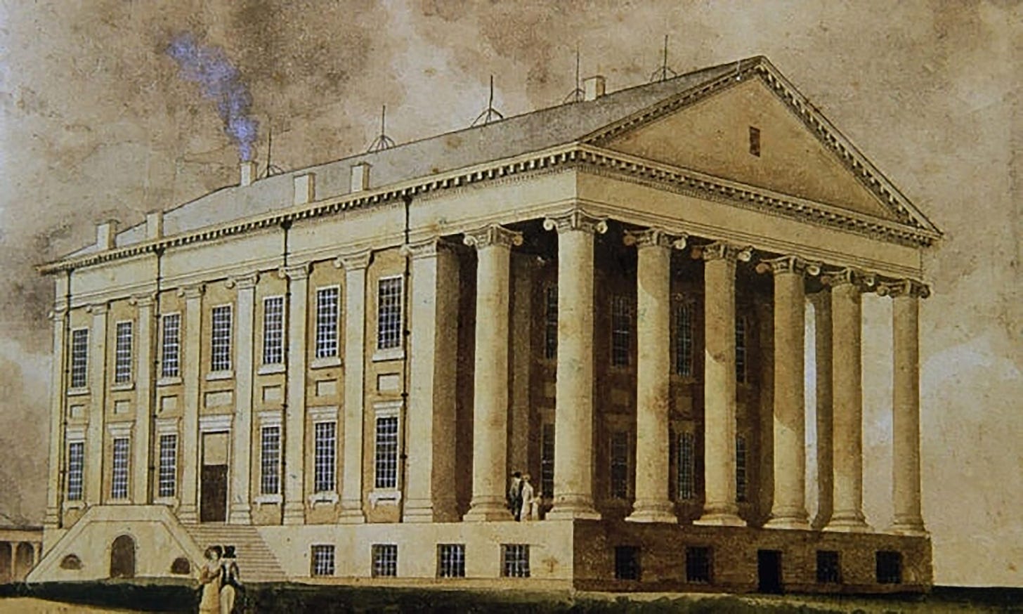 The Virginia State Capitol rendered in an 1830 watercolor by William Goodacre.